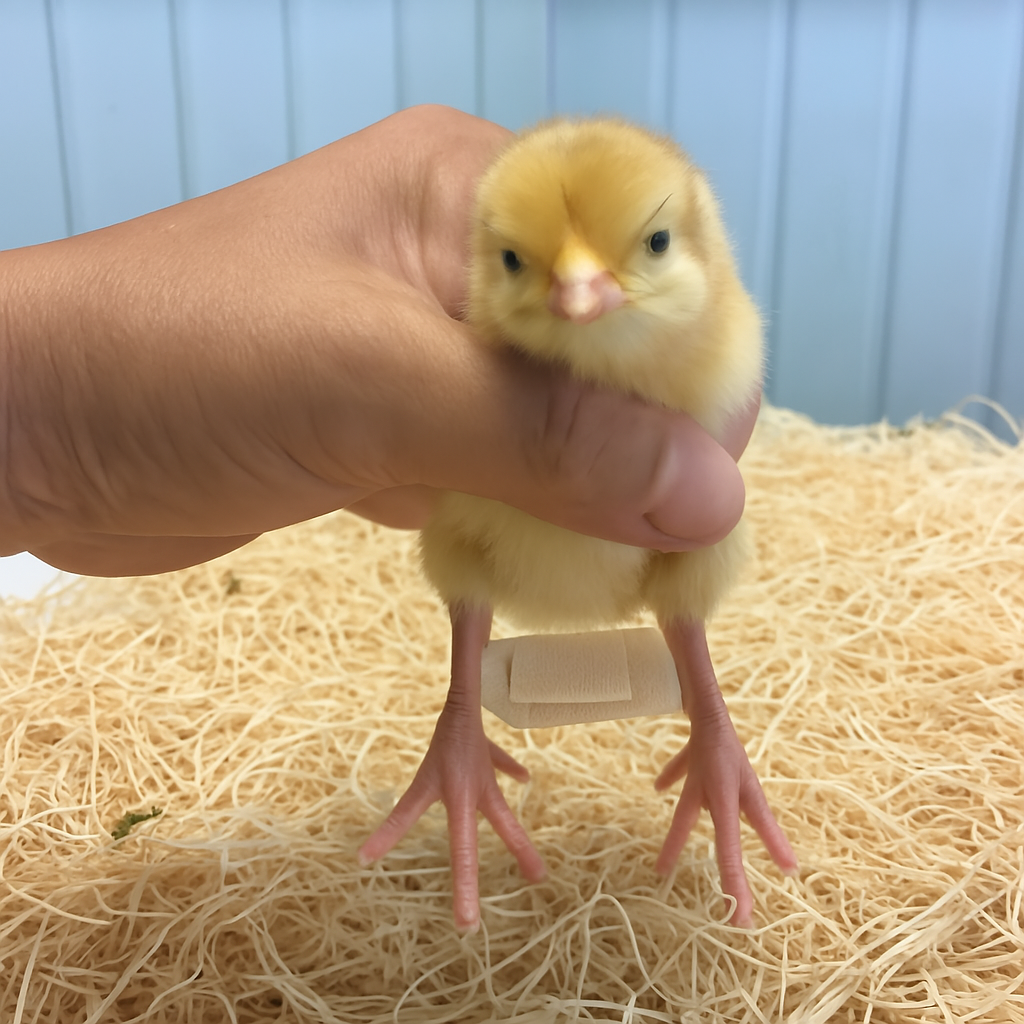 Placing the chick in a narrow container, such as a drinking glass lined with a non-slip material, can help it maintain an upright posture. This confinement encourages the legs to position correctly. Ensure the chick has regular breaks to access food and water, and monitor its comfort closely.