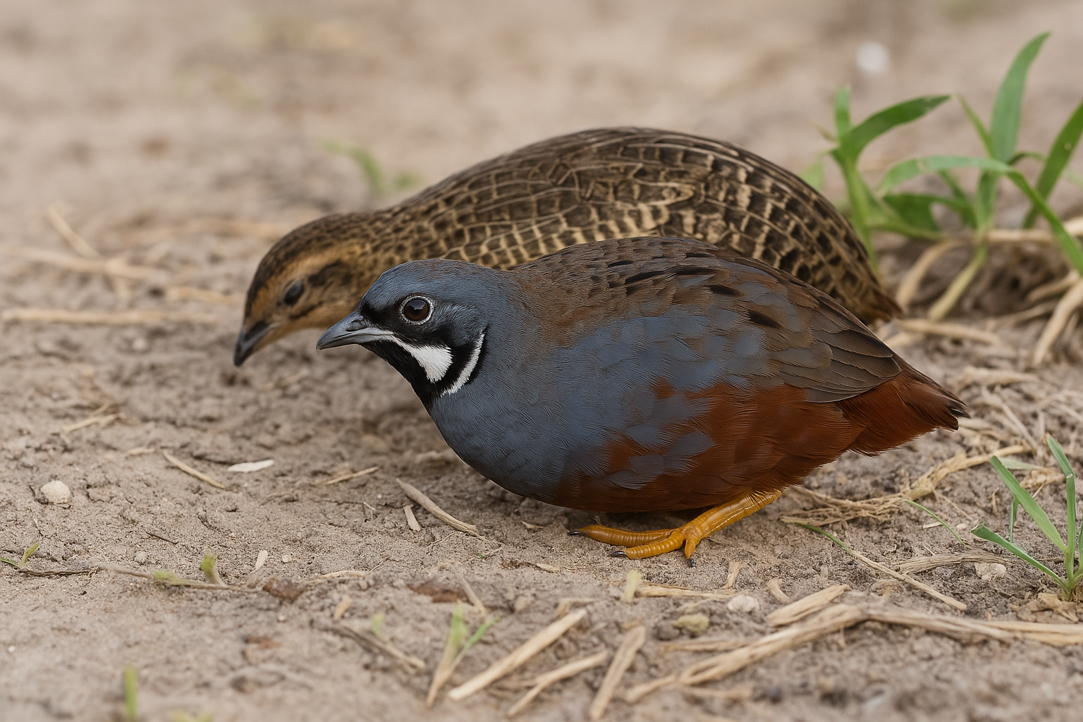 Male Chinese painted quail have bright chestnut throats and a white face outlined in black, while females are plain brown without bold markings. These differences make it easy to tell them apart in adults. Juveniles, however, may look similar until they mature.