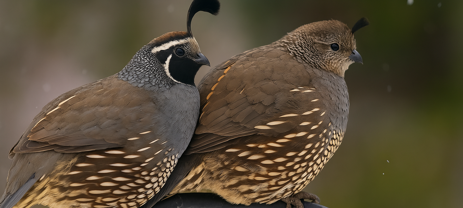 Male California quail have a distinctive black throat and a larger, curved topknot, while females are more subdued in color with a brownish-gray chest and smaller topknot. These differences make it relatively easy to tell them apart.