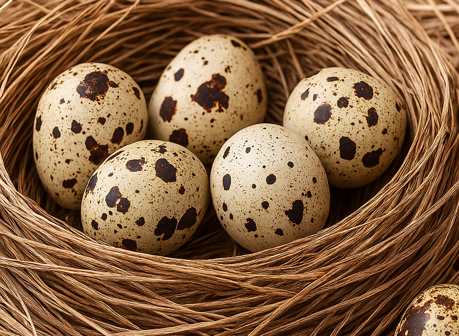 Common quail eggs are small, typically weighing around 9-12 grams. They have a smooth, oval shape and are characterized by their speckled brown or tan shells, which vary in intensity from light to dark. The speckling gives them a unique, natural appearance, making them popular for culinary uses and decorative purposes.