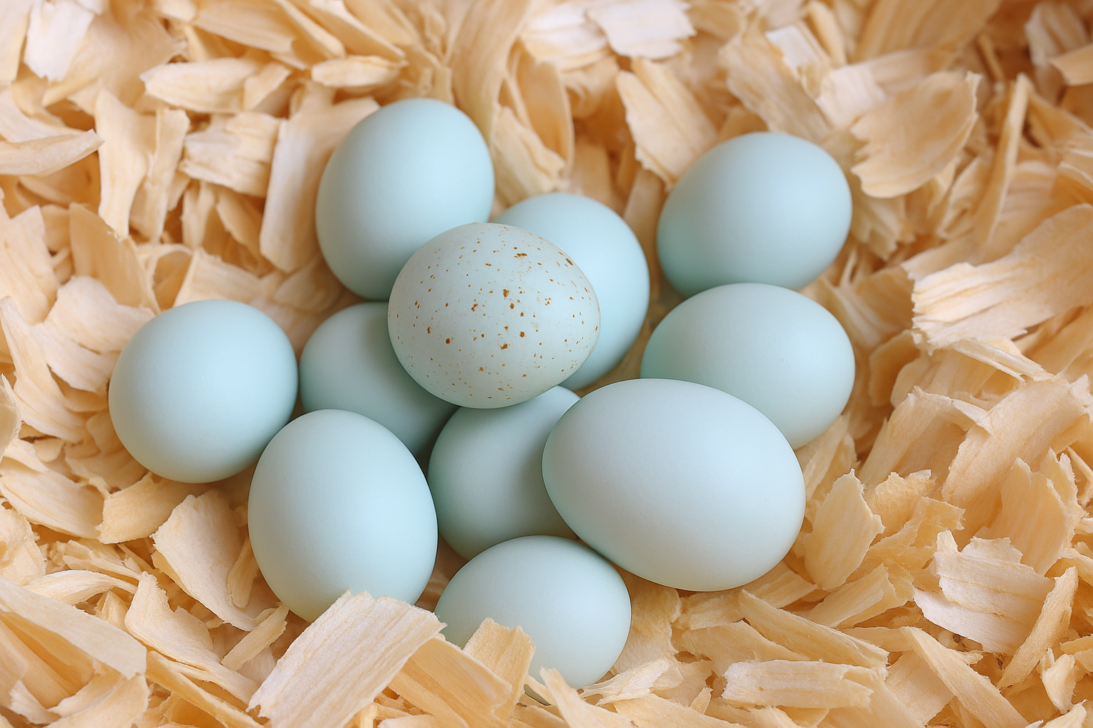 Jumbo Celadon quail eggs are known for their distinctive blue shells, which range from a soft sky blue to a pale turquoise.